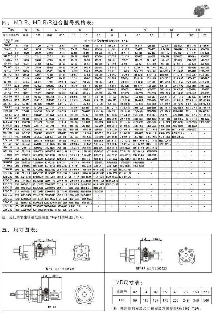MB-R,MB-R/R則和型號(hào)規(guī)格表尺寸圖表